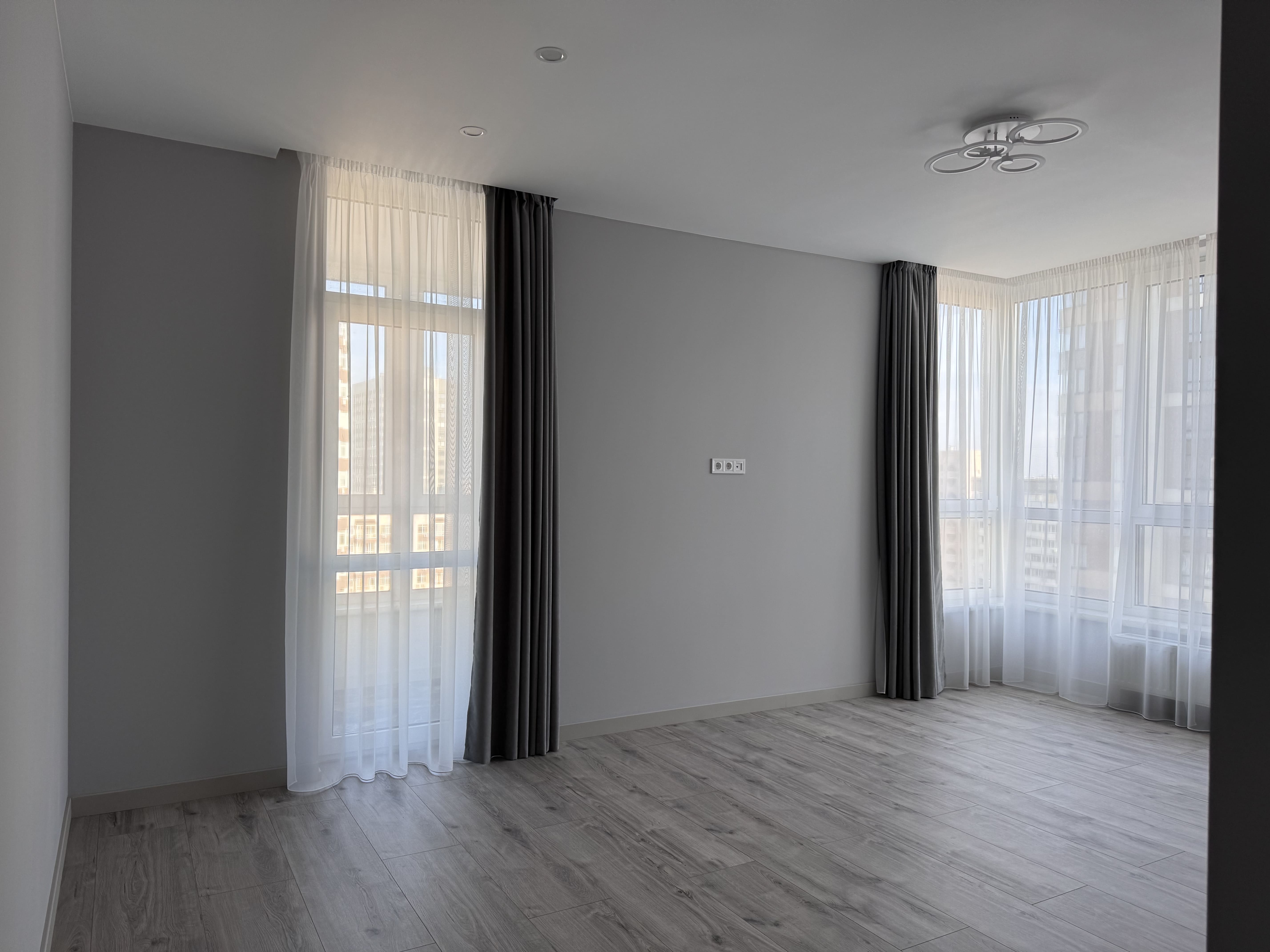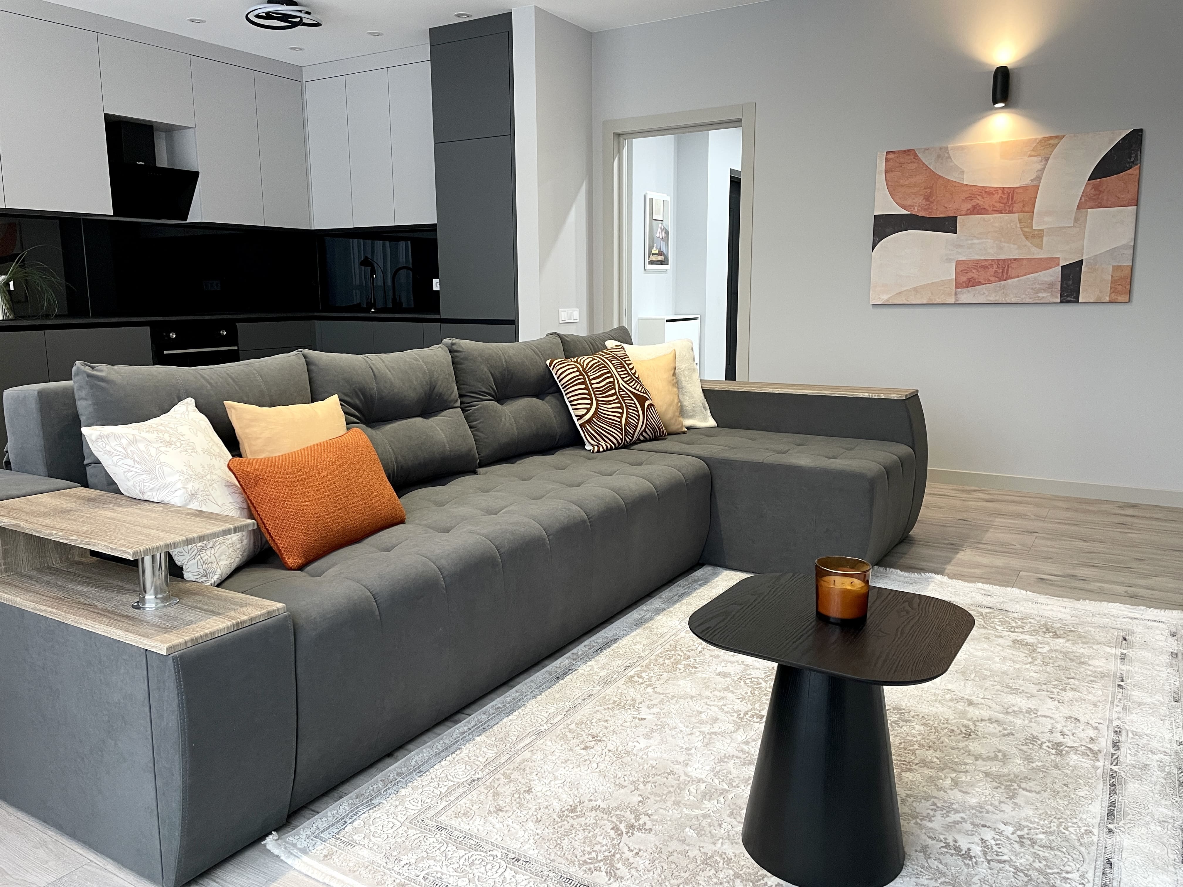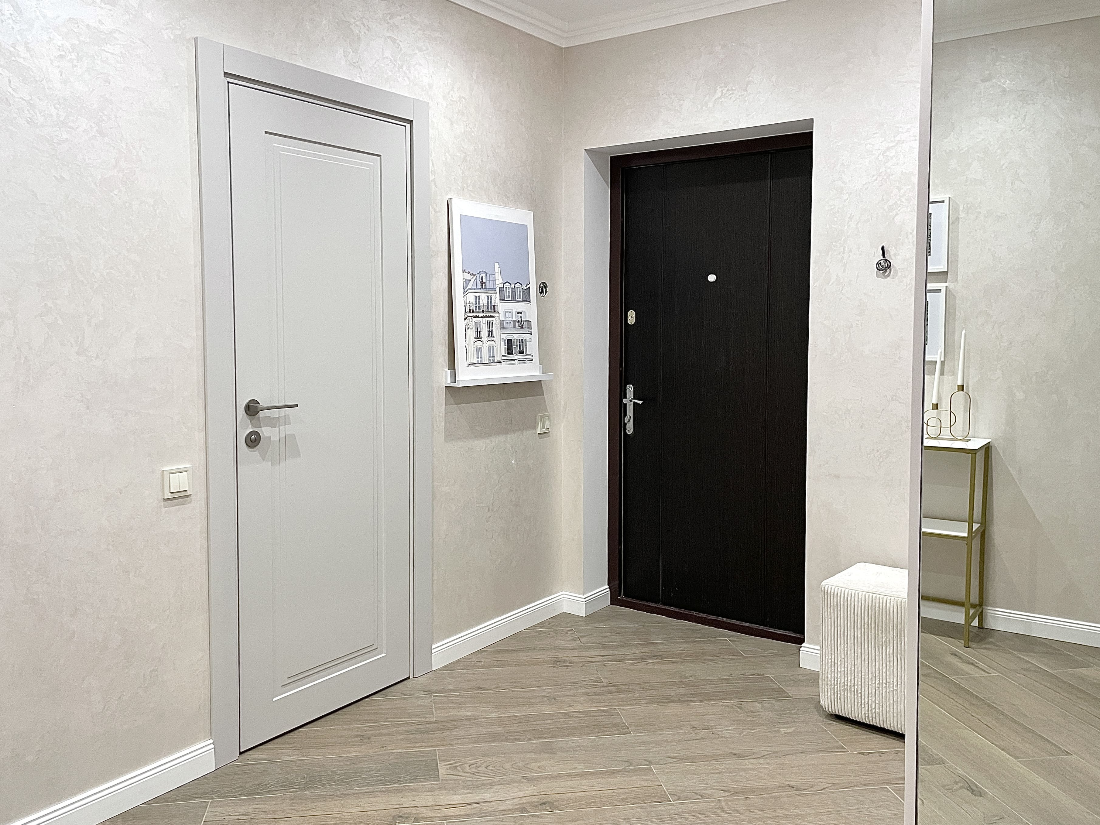 Цей об’єкт, у ЖК Варшавський, став справжнім викликом з точки зору використання кольорів в інтер’єрі. Наша головна мета полягала в тому, щоб перетворити простір на більш теплий, затишний та «живий», зробити 50 відтінків сірого привабливими, яскравими та стильними, позаяк цільова аудиторія для цієї квартири – молода пара або сім’я.