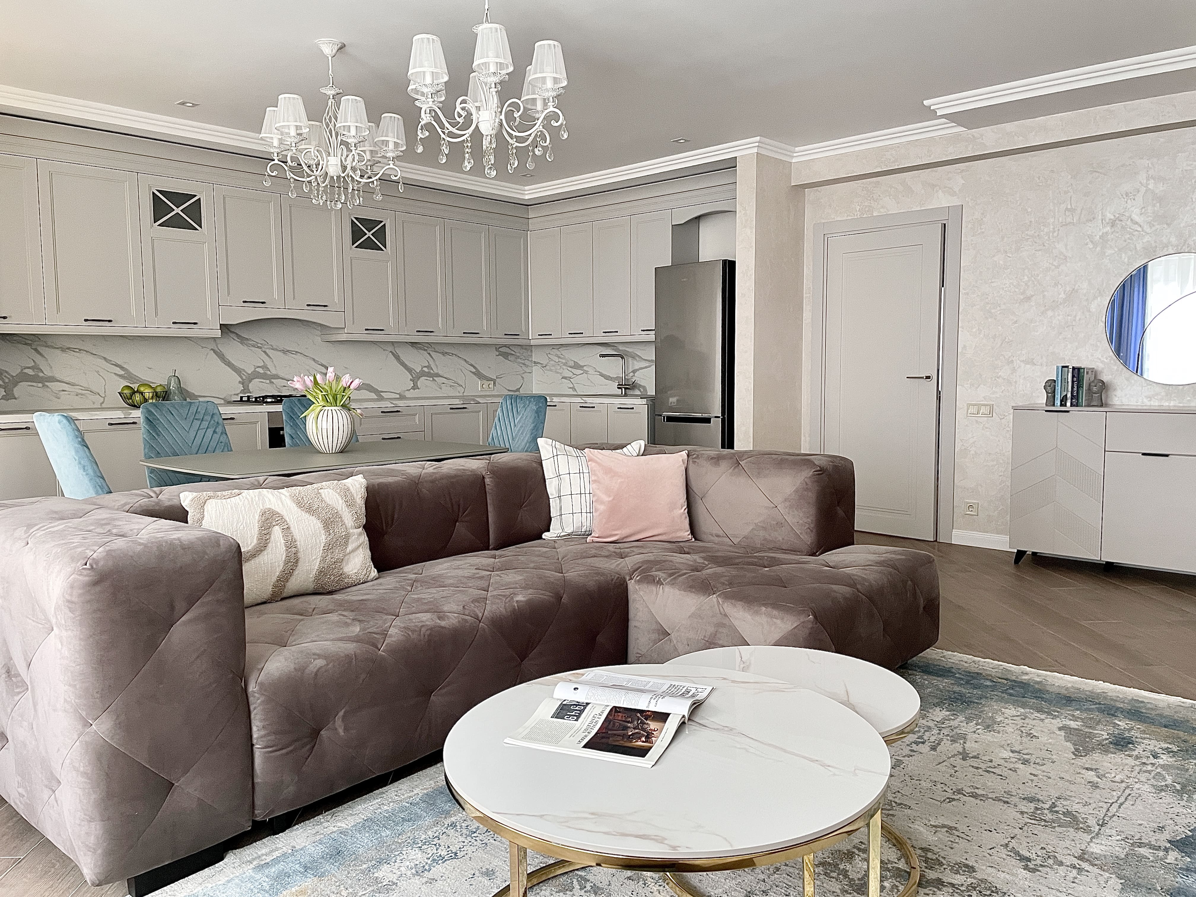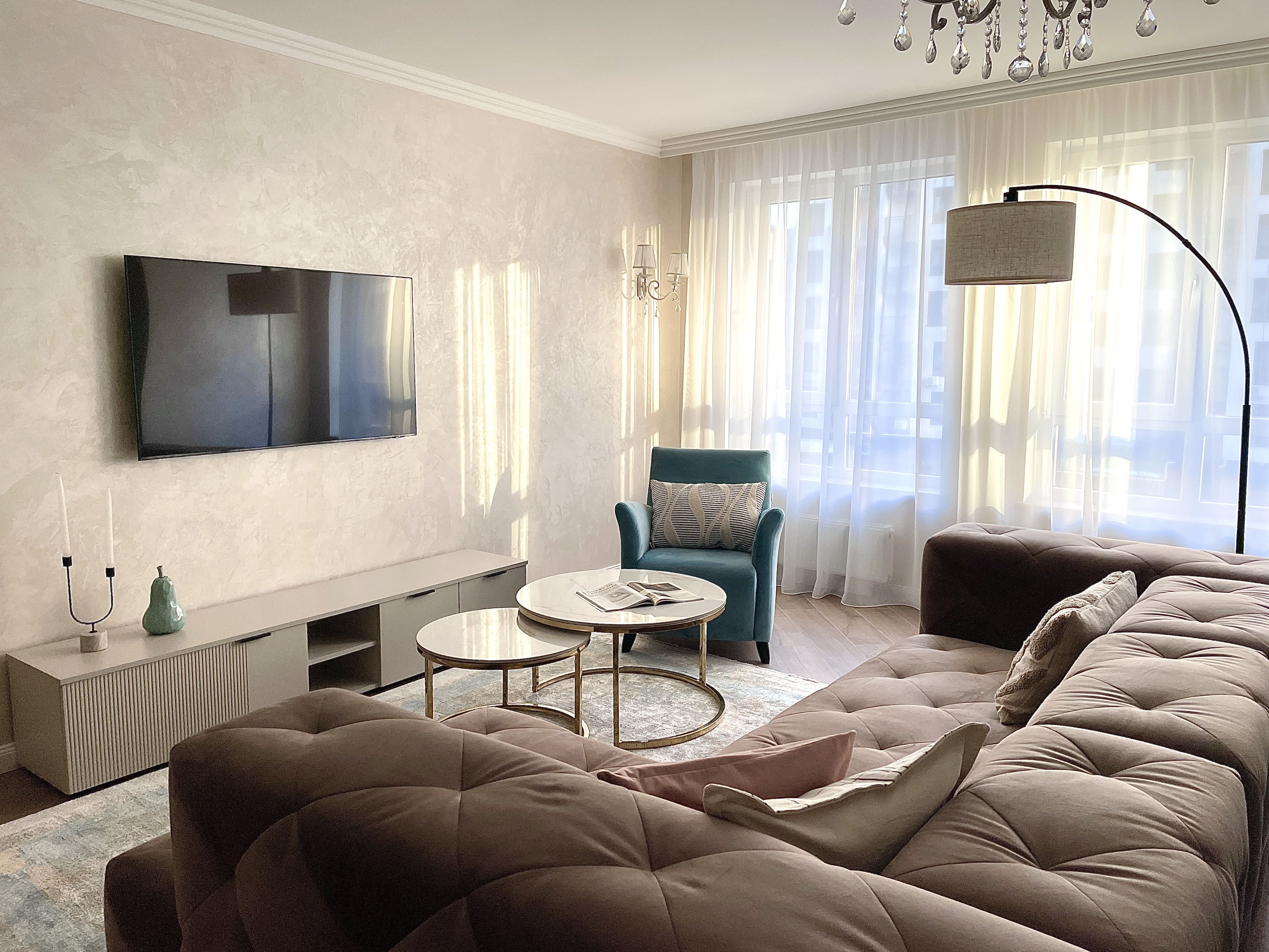Простора квартира, розташована в безпосередній близькості від центру міста в ЖК Львівський квартал, з оптимальним плануванням та ремонтом у стилі сучасної класики.