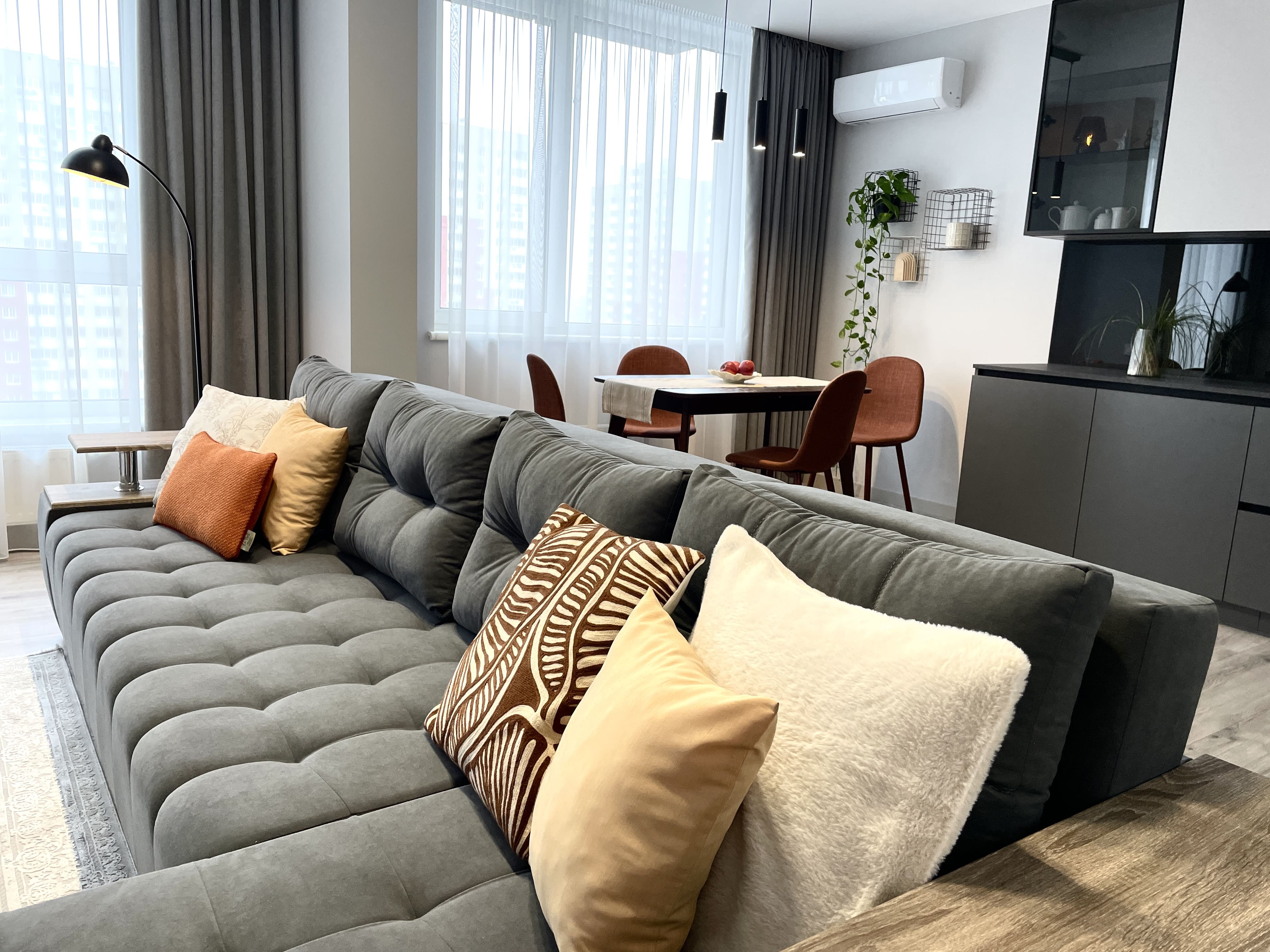 Ми використали яскравий декор, замінили меблі в обідній зоні на більш актуальні, облаштували вхідну групу гардеробною та функціональними інтер’єрними елементами, які додали зручності та естетики. Спальня та балкон стали затишними зонами відпочинку, що підкреслили всі переваги простору.